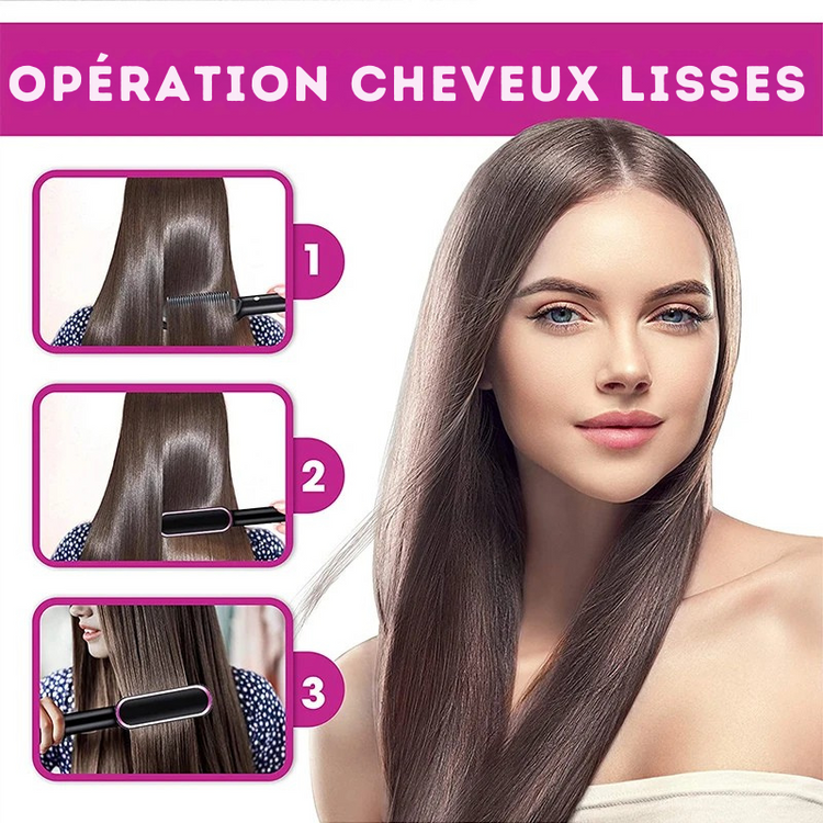 lissage parfait en un seul passage ,un peigne chauffant 3en1 pour des cheuveuc lisses brillant et protegés
